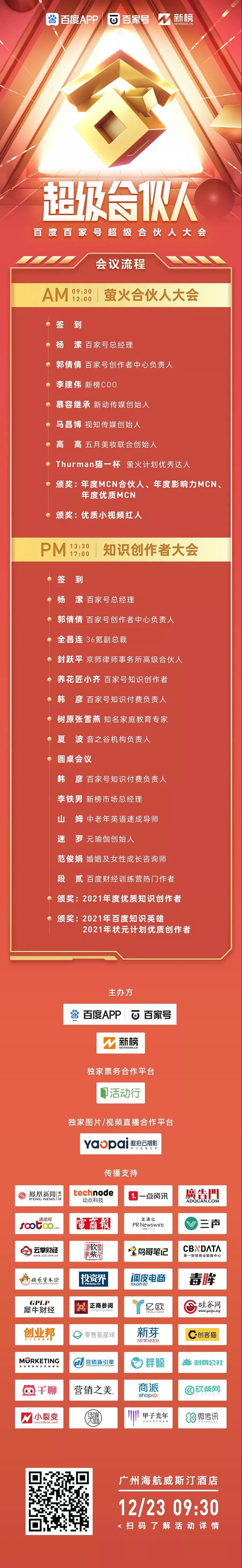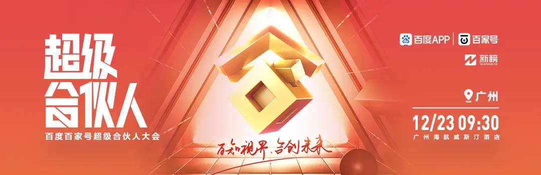 12月23日,百家号将联合新榜在广州举办“百度百家号超级合伙人大会|广州站”,旨在为创作者提供平台,深入与平台、机构交流探讨——